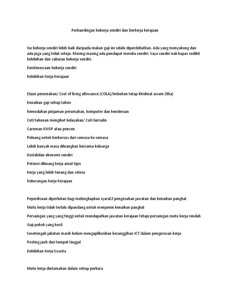 Perbandingan Bekerja Sendiri Dan Berkerja Kerajaan Pdf